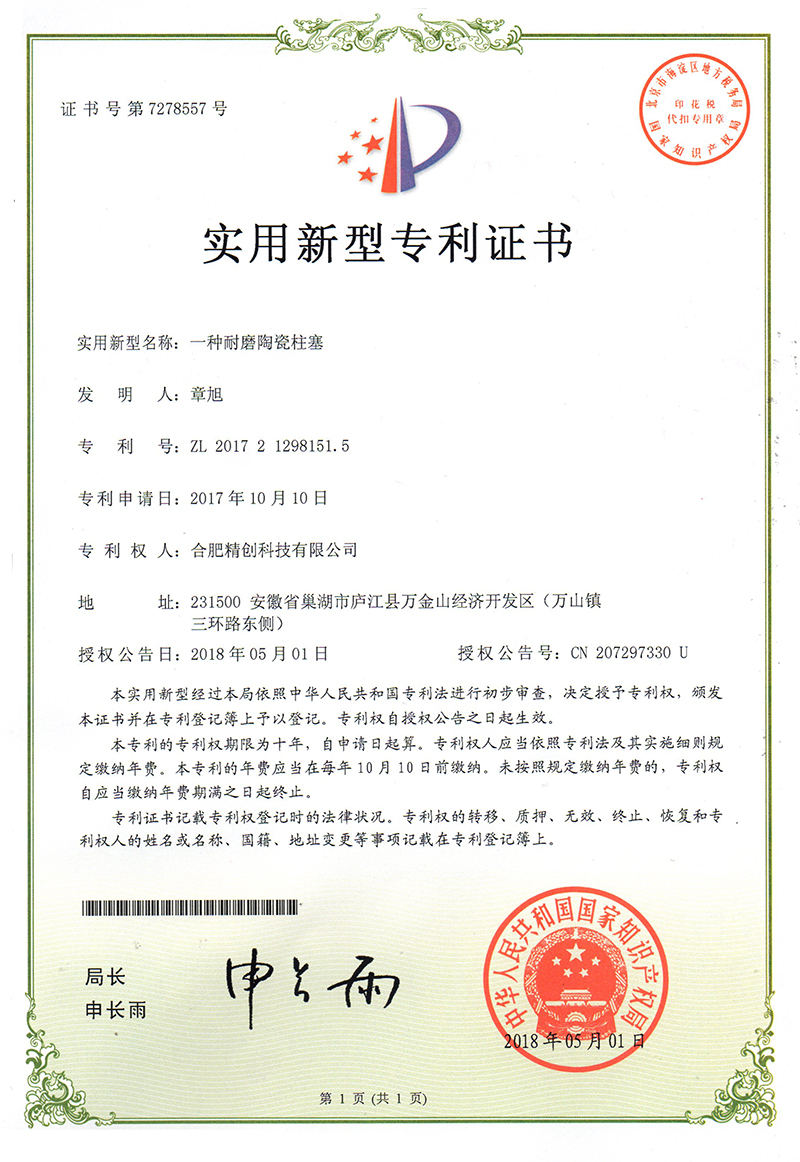 (2018實(shí)用新型)一種耐磨陶瓷柱塞